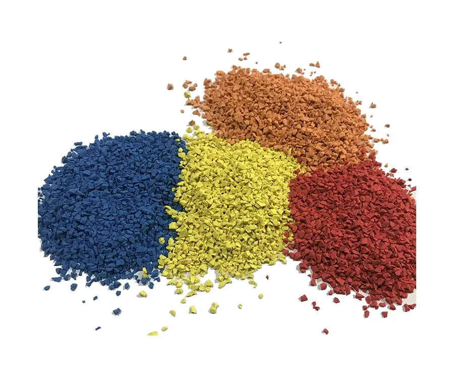 Цветная резиновая крошка: Окрашивается в различные цвета для создания декоративных покрытий.